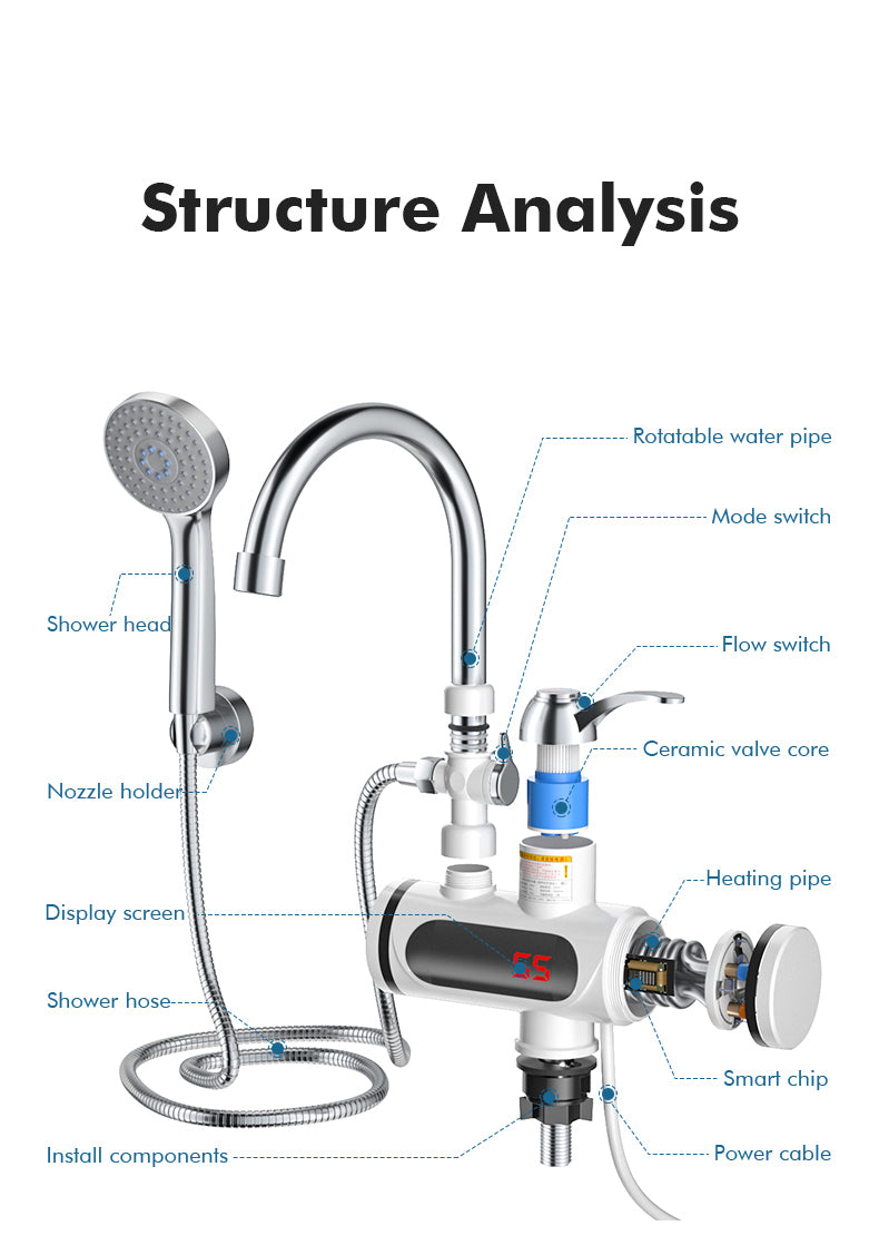 Powered by a 3000W high-performance heating system, this faucet heats water in just 3–5 seconds, giving you immediate access to warm water whenever you need it.
